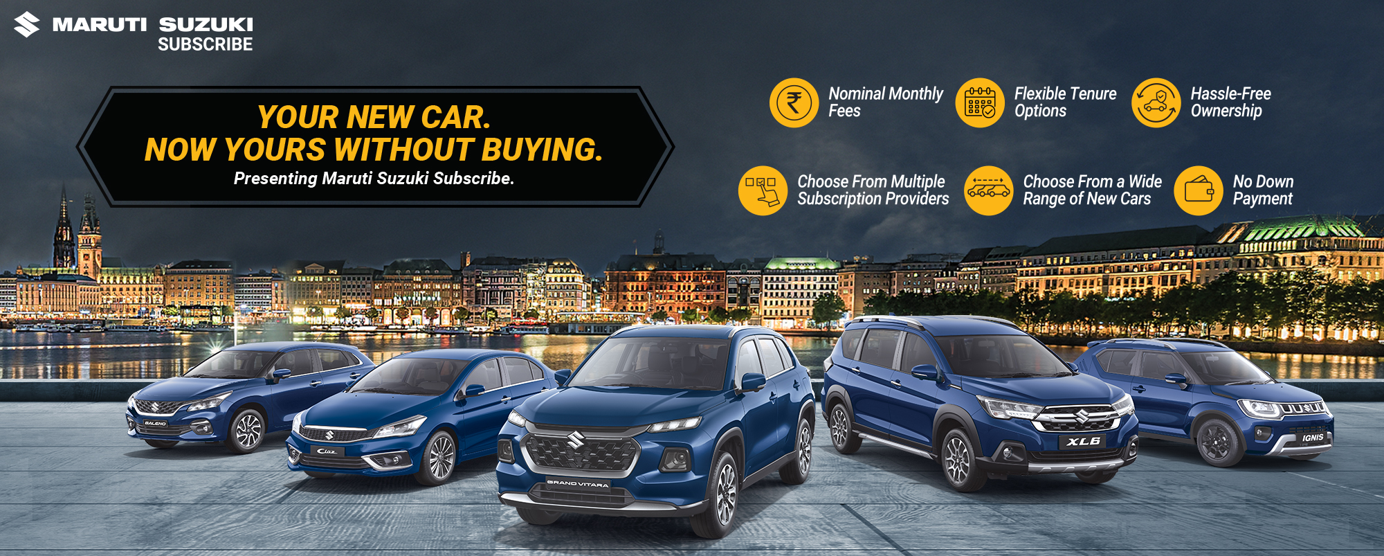 Maruti Suzuki Subscribe enables all customers to enjoy driving their preferred Maruti Suzuki cars without having to deal with all the financial responsibilities that come with owning a car.All you need to do is opt for a monthly subscription plan at a fixed monthly fee, which includes the routine maintenance and insurance costs, and choose a flexible tenure. At Eakansh Wheels in, Maruti Suzuki Nexa, Ambala, all Hatchback, Sedan, SUV, the MUV models line-up includes Baleno, Invicto, EVitara, Jimny, Ciaz, Ignis, Fronx, Grand Vitara, XL6. Here, you will enjoy Maruti Suzuki Subscribe benefits such as: